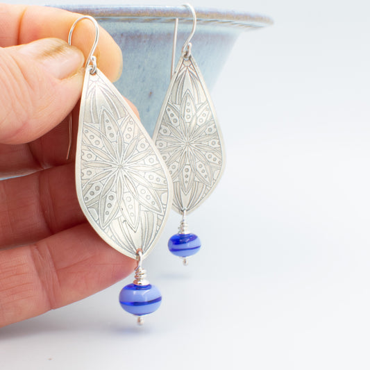 Periwinkle Swirls over Aqua Teardrop Earrings