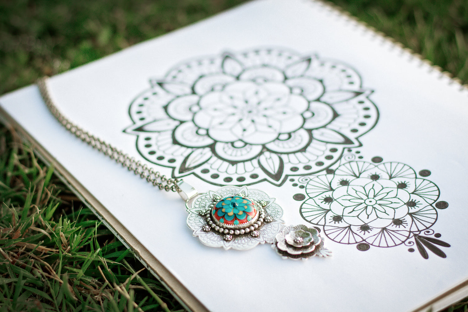 Lately, I have been working to put together specific collections, grouping glass beads, and cabochons with mandala patterns to tie the collection together. It makes the process more challenging and creative. I love every step of the process.