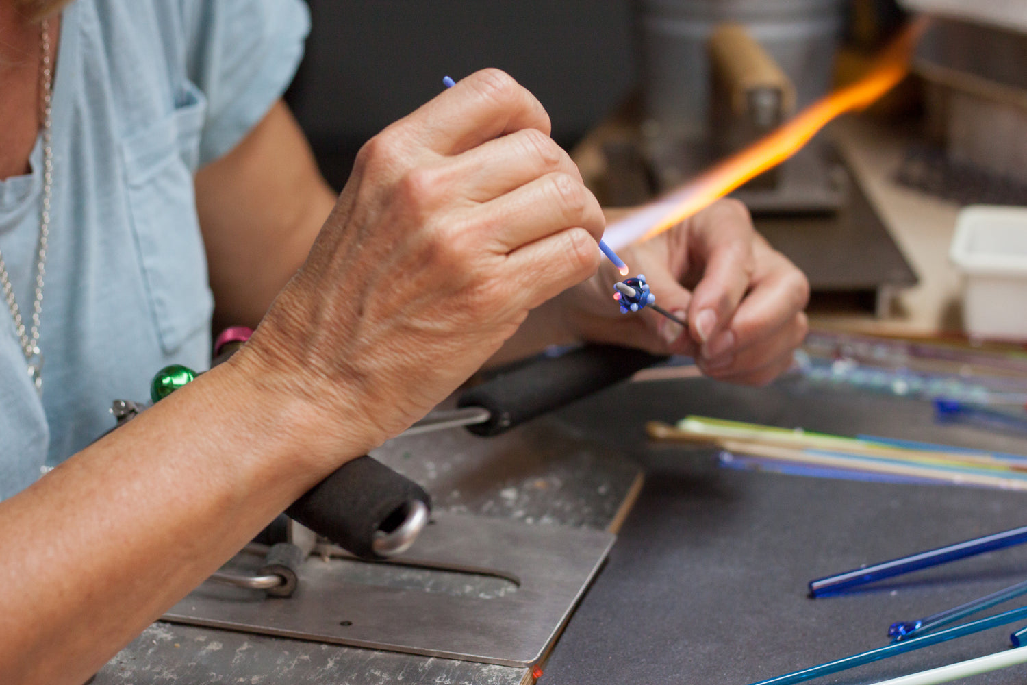 Lampwork glass, or glass bead making, dates back over 3,000 years. I fell in love with it in 2006 finding the process of manipulating molten glass over a steel rod to be fascinating and mesmerizing. Using a mix of oxygen and propane, I melt rods of glass with a torch to create both small and large beads.