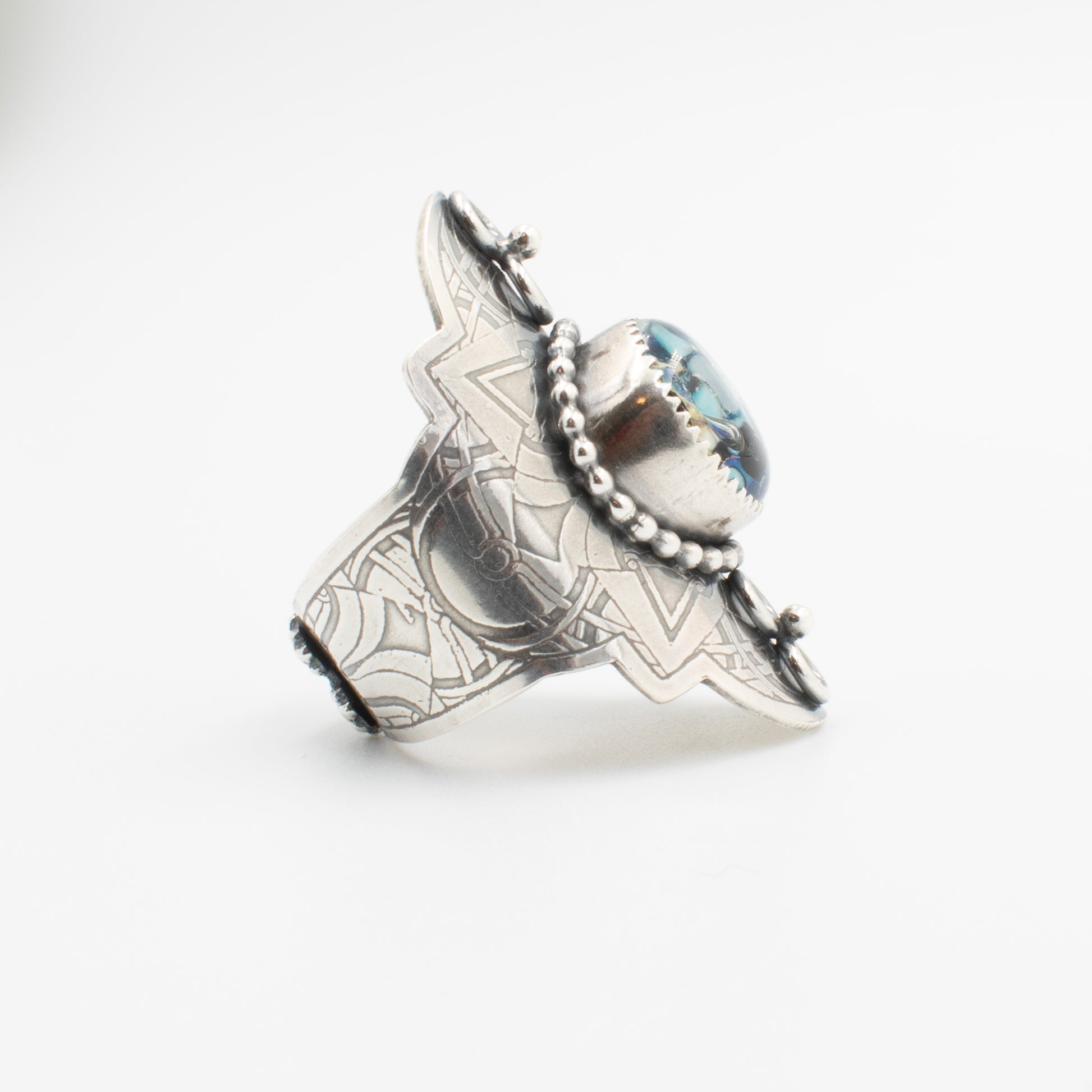 - The total height of the ring from the base of the shank to the top of the cabochon is 1 1/4"